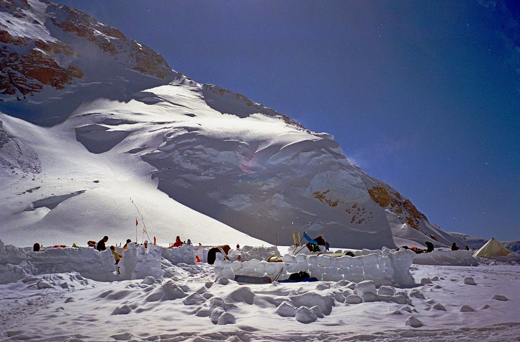 The camp at 14,200 ft. The slope behind is called the "Orient Express".