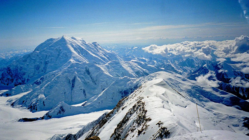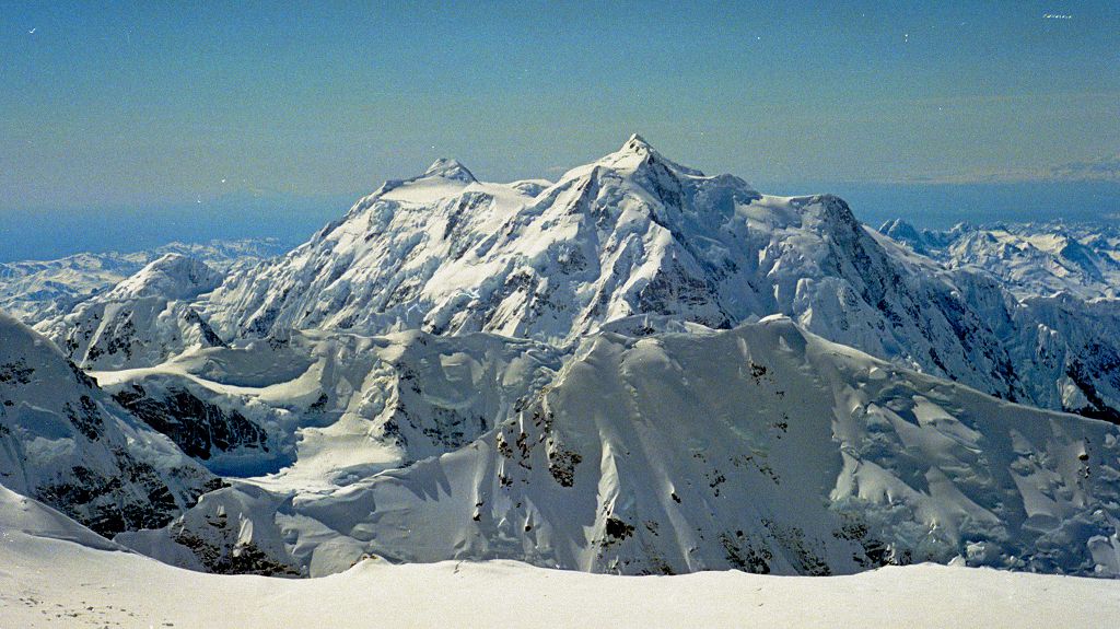 Another view down the ridge. with Mount Foraker (17,400 ft, 5304m) at left.