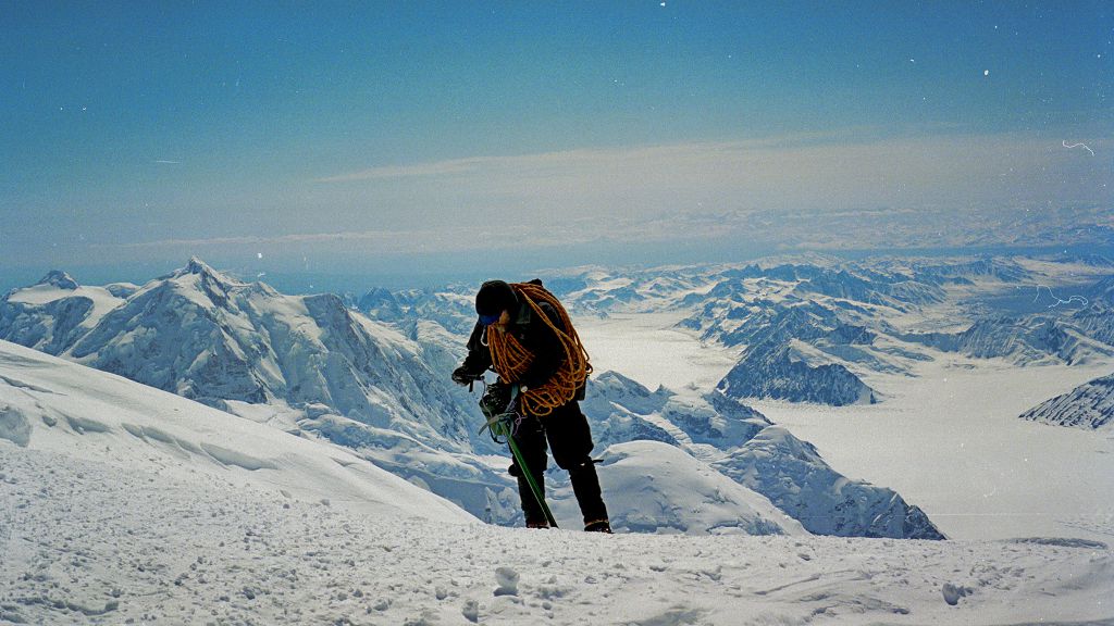 For a long time I had been attracted by Denali (20,320 feet; highest peak in North America), but the crevasses below 14,200 feet make it dangerous to solo. In 1999, I went with one other person, Pete Downie, on the West Buttress route. Below 14,200 feet we climbed together; above, effectively, we soloed.
