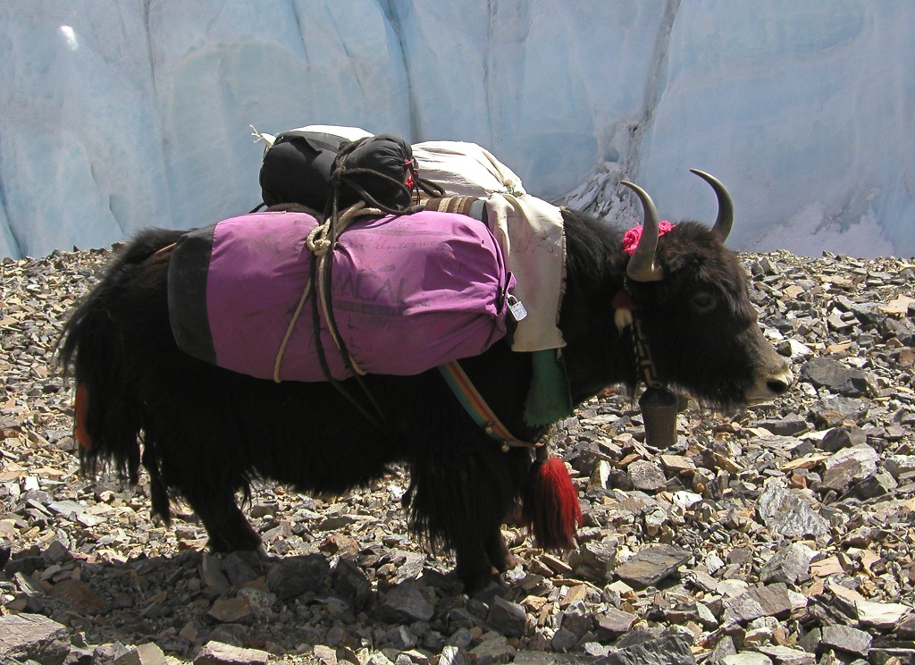 A yak, probably carrying 45-50kg