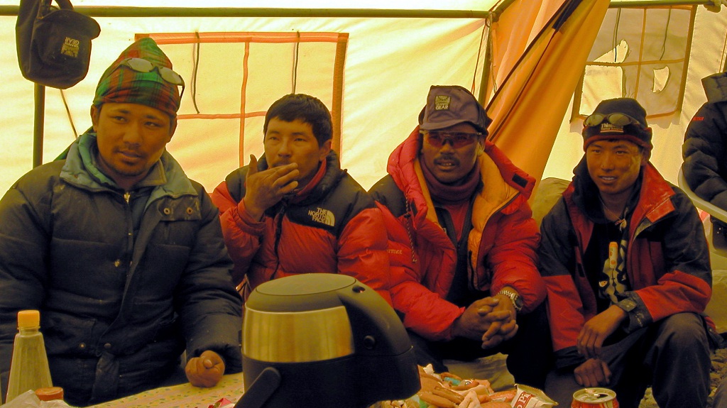 The Sherpas from the various groups had their own meeting to arrange the setting up of the fixed ropes, thereby cutting Russell Brice out.